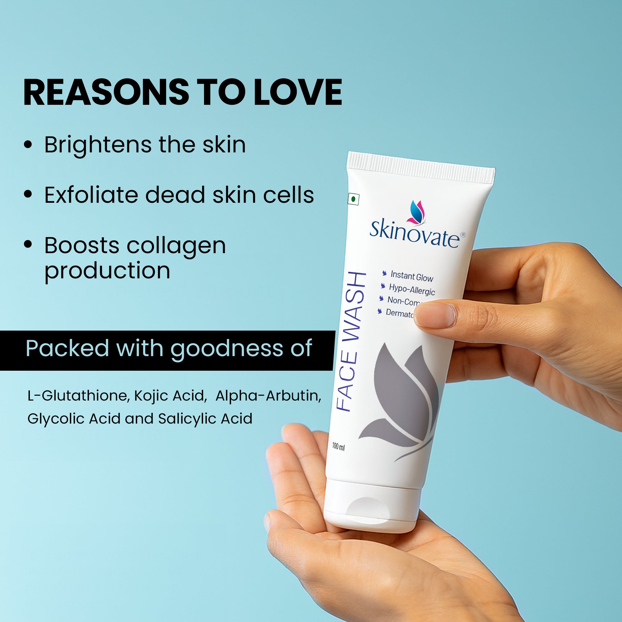 Start your routine with Skinovate Face Wash—formulated to gently cleanse and remove impurities without stripping the skin’s natural oils. Its hypoallergenic and non-comedogenic formula provides an instant glow while maintaining pH balance.