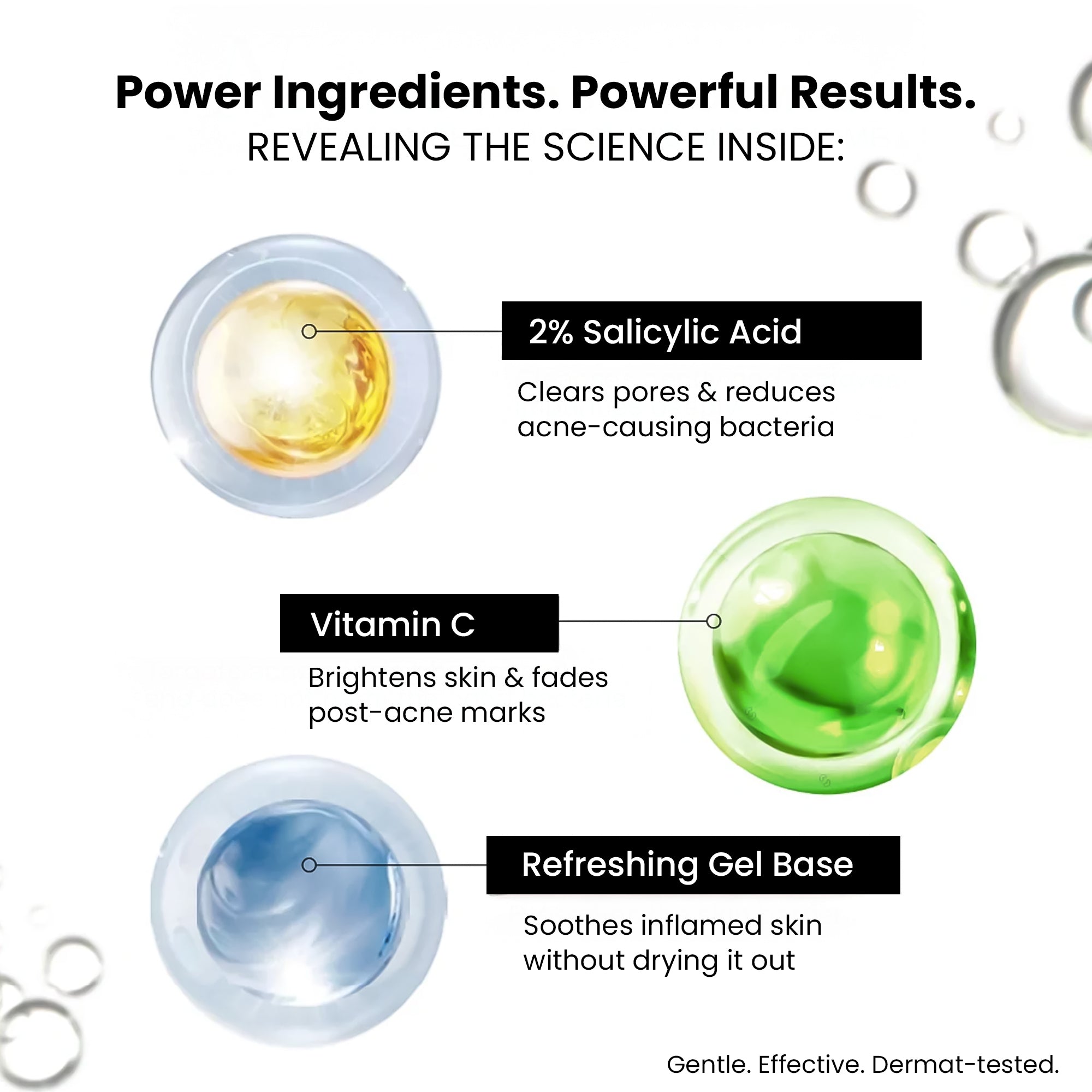 Salicylic Acid (2%) – Clears pores, reduces acne, and exfoliates skin