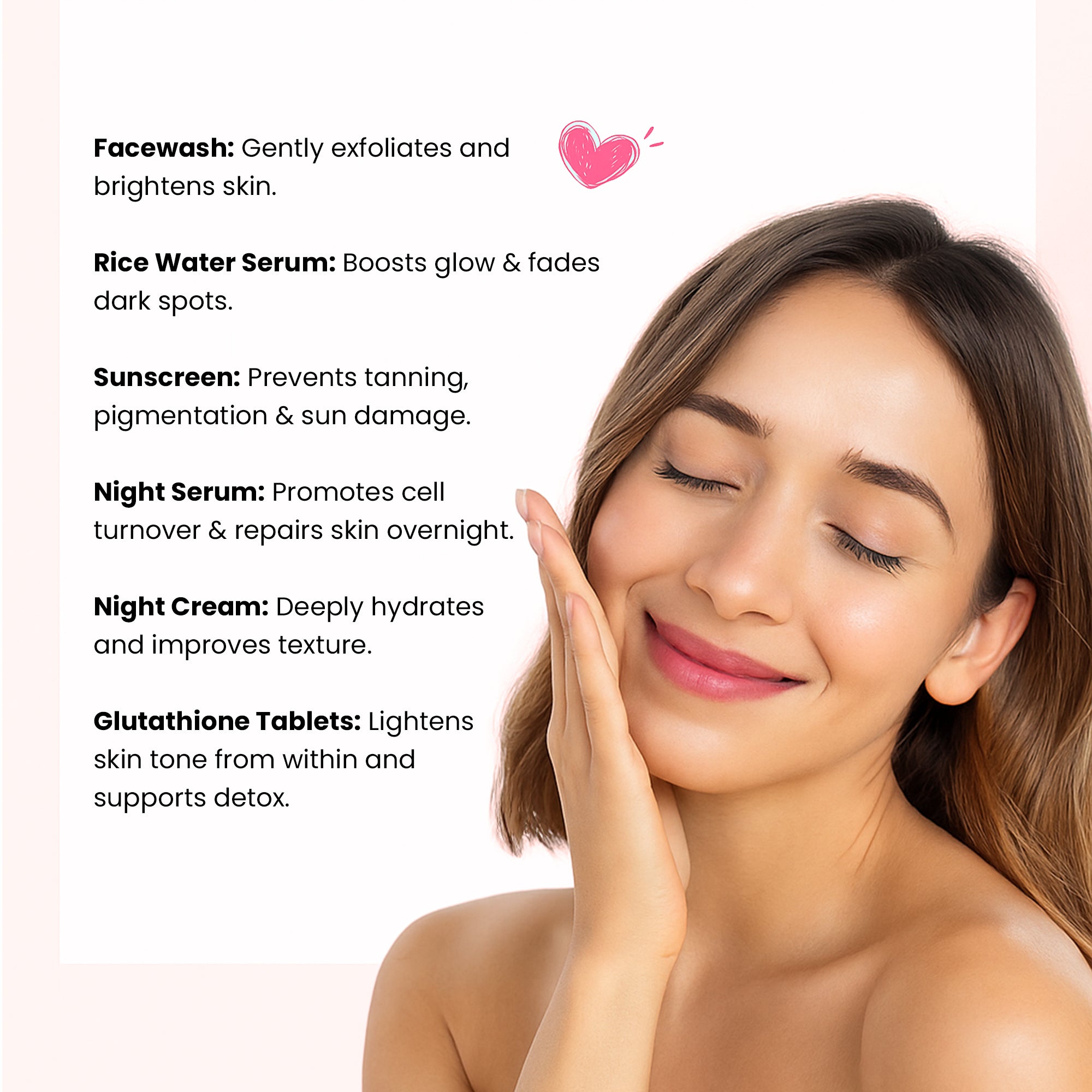 Glutathione Glow: Brightens complexion and supports detoxification.