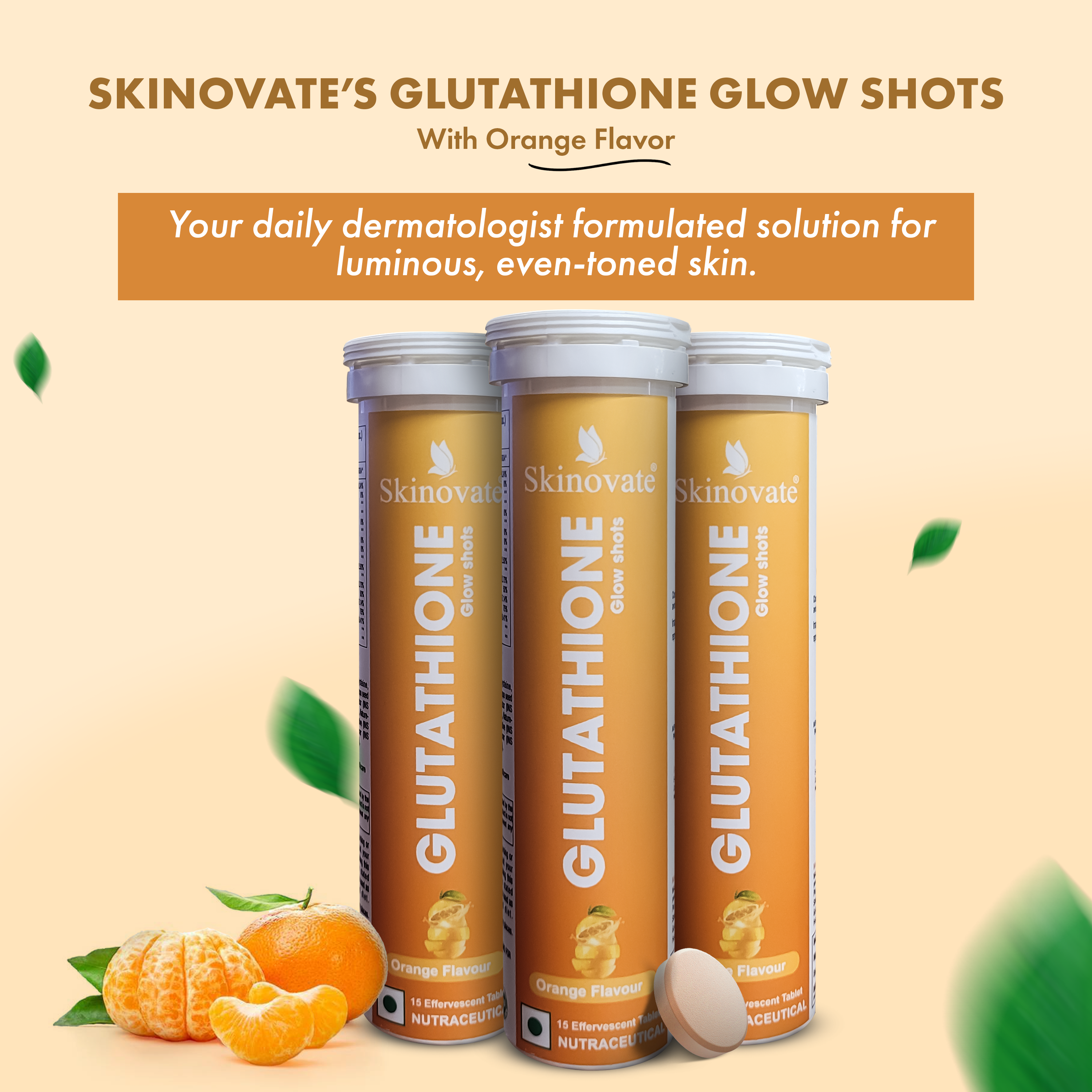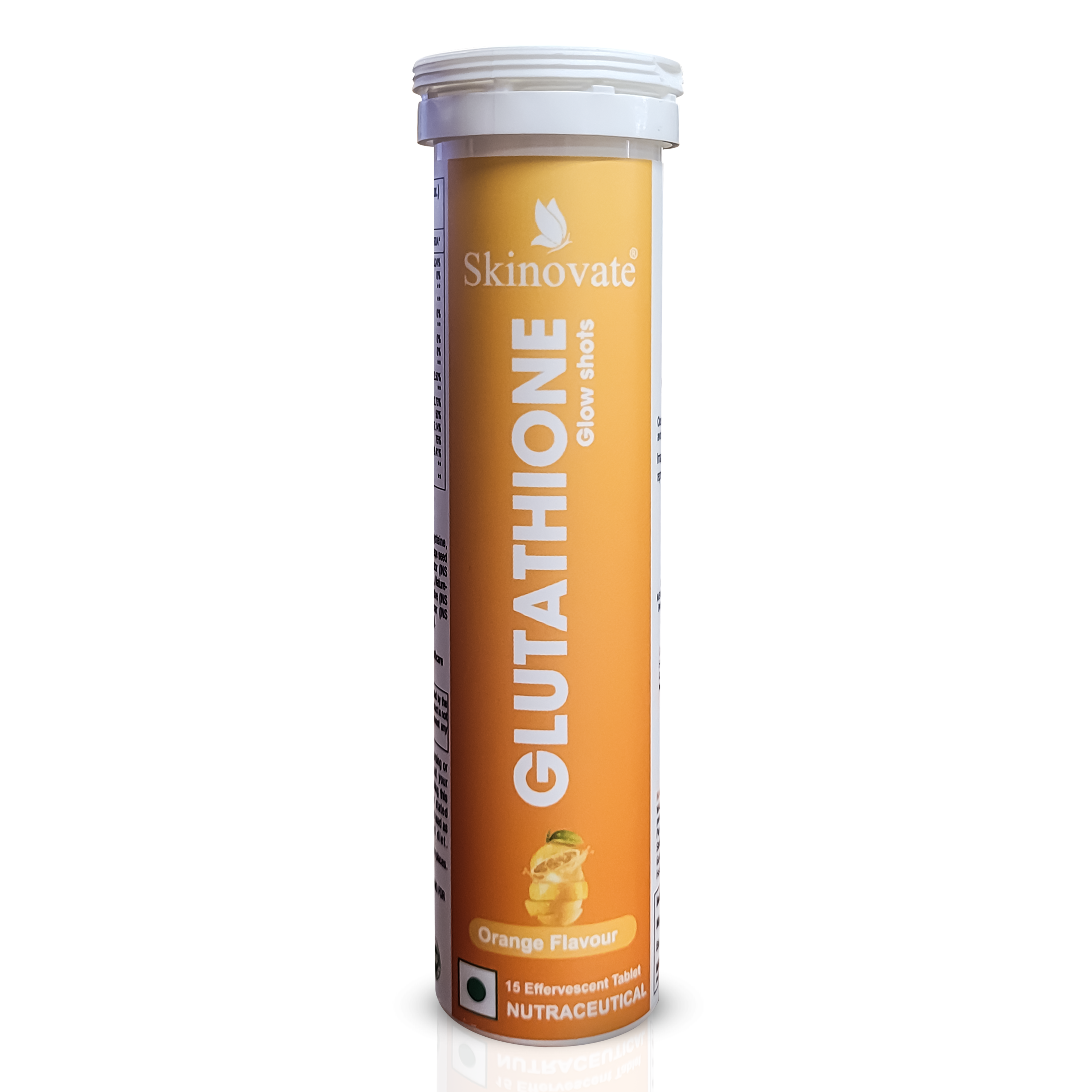 Unlock your skin's inner glow with Skinovate Glutathione Glow Shots – a delicious orange-flavoured effervescent tablet infused with the powerful antioxidant Glutathione, known for its skin-brightening and detoxifying properties.