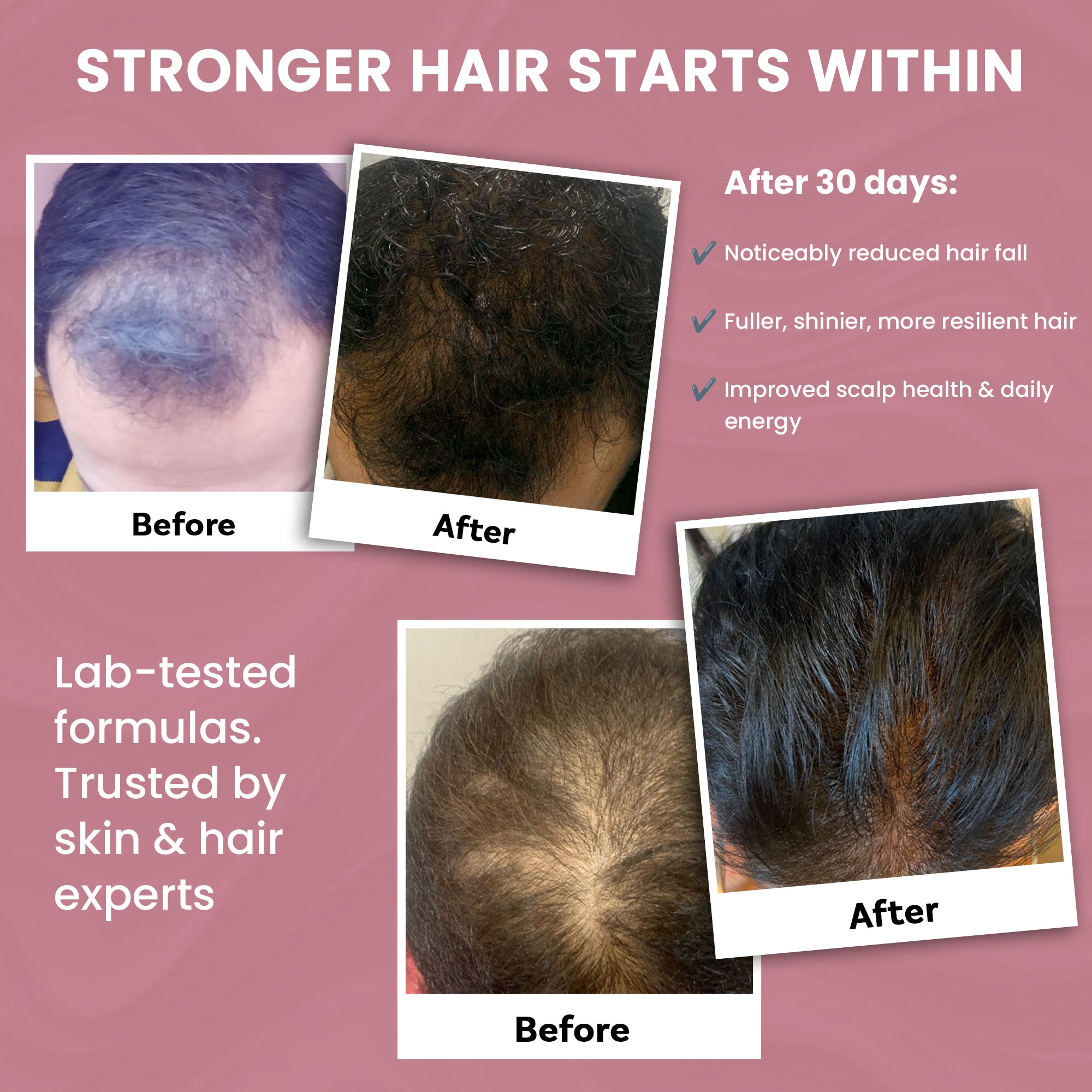 This powerful combo ensures inner nourishment with outer action—perfect for those battling hair fall due to stress, poor diet, or lifestyle changes.